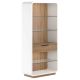 Every room deserves a work of art. This versatile 76? etagere features a sleek white exterior with rounded corners, enclosing the beauty of a wood grain background like a contemporary gallery frame. Inside are three adjustable glass shelves, a fixed wood shelf atop an elegant drawer, and three-way touch lighting. A signature element of the Portico collection, a plinth base, presents this piece as the work of modern art it truly is.