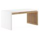 The work day has never looked more beautiful. Inspired by sleek minimalism and a fashion-forward urban aesthetic, this chic desk is a captivating addition to the office. Its white exterior conceals an unexpected detail, revealing vertical wooden slats below that add a touch of texture. A streamlined central drawer provides storage space for all \your writing essentials.