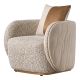 A study in sculptural glamour, the Gineverra Accent Chair brings couture-inspired elegance to any setting. Its gracefully curved silhouette is wrapped in plush two-toned chunky boucle in a chic biscotti hue, creating rich texture and an inviting sense of comfort. The exterior back glows softly in an ivory fabric woven with delicate lurex, while a signature gilded chain traces the sweeping contours like a strand of fine jewelry. An abstract quilted motif flows across the back panel, completing the design with dimension, artistry, and unmistakable sophistication.