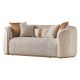 Graceful curves and couture-inspired detailing define the Gineverra Loveseat, a glamorous reinterpretation of the classic tuxedo silhouette. Wrapped in plush two-toned chunky boucle in a chic biscotti hue, the seat offers rich texture and an inviting softness that feels effortlessly indulgent. The back reveals an ivory fabric delicately woven with lurex, casting a soft golden shimmer, while a signature gilded chain traces the sculptural curves like a strand of fine jewelry. Completing the design, an abstract quilted motif lends depth and artistry, elevating the piece into a statement of refined glamour.
