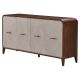 The Houston Sideboard blends contemporary elegance with versatile storage. Framed in a rich walnut finish, its contrasting gray door fronts showcase a delicate starburst pattern with a subtly textured surface. A refined gold trim outlines the piece, enhancing its sophisticated silhouette. The sleek, tapered handles combine wood and metal for a modern, tailored touch. With ample storage and thoughtful details, this sideboard brings both function and style to any dining or living space.