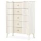 A statement of refined elegance, the La Marisia 5-Drawer Chest exudes sophistication with its tall, statuesque silhouette and graceful detailing. Finished in a soft pearl hue with champagne accents, this piece radiates quiet luxury. The faux-shagreen drawer fronts introduce a sumptuous textural contrast, while delicately ribbed side panels add sculptural depth, echoing the collection's signature aesthetic.