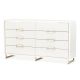 Refined simplicity meets radiant luxury in the Palm Gate Dresser. Cloaked in a glossy Cloud White finish and framed in warm Japan Gold, this piece exudes serene sophistication from every angle. Its eight spacious drawers are adorned with textured acrylic fronts that emulate the organic beauty of wood grain-creating a mesmerizing play of depth and light. Designed with both beauty and practicality in mind, each drawer glides smoothly on self-closing mechanisms and is lined in velvet for an indulgent touch.