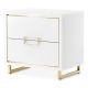Designed to embody serenity and sophistication, the Palm Gate Nightstand transforms everyday living into a luxurious ritual. Its glossy Cloud White body glistens with quiet elegance, framed by Japan Gold accents that radiate warmth and refinement. Each drawer front features textured acrylic panels crafted to mimic the flowing beauty of wood grain, adding depth and light play to its clean geometry. Thoughtfully designed for modern comfort, the nightstand includes two self-closing drawers that blend effortless function with artful design.