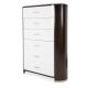 - Chest contains hidden storage on both sides, figured eucalyptus veneer top, 8 drawers in anigre veneer, and brushed nickel feet