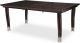 Dining table has self-storing extensions, with figured eucalyptus veneer in an espresso finish, a platinum trim, vine-twisted "ballerina" legs, and two 24" leaves
