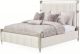 Panel headboard, footboard, and side panels are upholstered in a woven textured fabric with shimmer