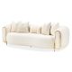The Sassani Sofa redefines contemporary elegance with its plush jacquard chenille upholstery and smooth, sculpted silhouette. Paired with soft, woven jacquard pillows, this piece invites you to sink into its luxurious embrace. The glint of gold metallic accents and sleek legs add a touch of refined glamour, making this sofa a stunning centerpiece for any modern living space.