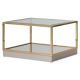 The Savannah Breeze Short Cocktail Table adds refined style and versatility to your living space. Designed as a sophisticated pair, the tables feature beveled glass tops offering a polished, elegant surface. A mirrored bottom shelf provides both functionality and a touch of glamour, perfect for displaying decor or keeping essentials close at hand. Framed in radiant gold, these tables can be used separately or combined with their larger counterparts to create a tailored centerpiece for your room.