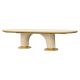 Transform every occasion into a grand affair with the Scotts Square Double Pedestal Dining Table. The oval tabletop dazzles with a luminous vanilla onyx-look surface, artfully framed in rich gold to emphasize its graceful curves. Sculptural pedestal bases, reminiscent of fluted architectural columns, evoke a sense of timeless elegance and refinement. Designed for both intimate dinners and grand gatherings, the table extends from 87 to an impressive 135 inches with the included leaves, offering luxurious seating for up to 10 guests. Red velvet storage bags are provided to keep the extension leaves perfectly protected.