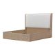 Opulent Upholstery: A plush, woven fabric headboard in a soft natural hue offers a refined and inviting presence.