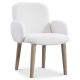 Upholstered seat and back with exposed wire-brushed oak legs in Aria finish