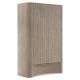 Curves and planes create a master play of light and shadow on the Loggia bar cabinet. Fluting marks the two doors while the base showcases a concave curve. The doors open to reveal lights, a mirrored back panel, bottle storage and two drawers.
