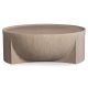 The Loggia cocktail table makes a play for modern styling with a combination of convex and concave shapes. Crafted of resin with a wood grain pattern, the table has the appearance of a bowl resting within straight-lined supports. A shallow basin top adds a soft curve, with the entire design finished in Aria.