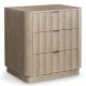 The Loggia nightstand patterns contrast and dimension with stunning fluting on its three drawer fronts. Finished in Aria, the case sits on a plinth base and supports a wood top with rounded corners. The drawers feature metal tab pulls finished in Laurion. A two-port A+C USB charging unit is also included.
