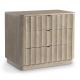 The Loggia nightstand patterns contrast and dimension with stunning fluting on its three drawer fronts. Finished in Aria, the case sits on a plinth base and supports a wood top with rounded corners. The drawers feature metal tab pulls finished in Laurion. A two-port A+C USB charging unit is also included.
