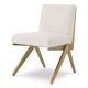 Chair Fico pairs quality with simplicity. This stylish armless seat is a contemporary steel take on wooden minimalist furniture from the 1950s. Featuring a brushed brass finish frame and cream-coloured boucle upholstery, it will be a comfortable and stylish addition to your dining area.
