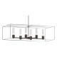 A colonnade of lights is supported by clean architectural lines. The Portico's articulate design is highly versatile and offers a two tone finish option. Part of the New Traditional Collection. Adjustable indoor pendant with finish and accent. Choose a finish for the canopy, downrods and inner fixture and choose an accent for the outer fixture frame. Available with your choice of Opal or Seeded Clear glass. Includes a multi-height stem kit with three 12" pipes, one 6" pipe and one 3" pipe.