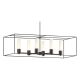 A colonnade of lights is supported by clean architectural lines. The Portico's articulate design is highly versatile and offers a two tone finish option. Part of the New Traditional Collection. Adjustable indoor pendant with finish and accent. Choose a finish for the canopy, downrods and inner fixture and choose an accent for the outer fixture frame. Available with your choice of Opal or Seeded Clear glass. Includes a multi-height stem kit with three 12" pipes, one 6" pipe and one 3" pipe.
