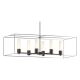 A colonnade of lights is supported by clean architectural lines. The Portico's articulate design is highly versatile and offers a two tone finish option. Part of the New Traditional Collection. Adjustable indoor pendant with finish and accent. Choose a finish for the canopy, downrods and inner fixture and choose an accent for the outer fixture frame. Available with your choice of Opal or Seeded Clear glass. Includes a multi-height stem kit with three 12" pipes, one 6" pipe and one 3" pipe.