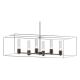 A colonnade of lights is supported by clean architectural lines. The Portico's articulate design is highly versatile and offers a two tone finish option. Part of the New Traditional Collection. Adjustable indoor pendant with finish and accent. Choose a finish for the canopy, downrods and inner fixture and choose an accent for the outer fixture frame. Available with your choice of Opal or Seeded Clear glass. Includes a multi-height stem kit with three 12" pipes, one 6" pipe and one 3" pipe.