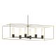A colonnade of lights is supported by clean architectural lines. The Portico's articulate design is highly versatile and offers a two tone finish option. Part of the New Traditional Collection. Adjustable indoor pendant with finish and accent. Choose a finish for the canopy, downrods and inner fixture and choose an accent for the outer fixture frame. Available with your choice of Opal or Seeded Clear glass. Includes a multi-height stem kit with three 12" pipes, one 6" pipe and one 3" pipe.