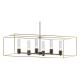 A colonnade of lights is supported by clean architectural lines. The Portico's articulate design is highly versatile and offers a two tone finish option. Part of the New Traditional Collection. Adjustable indoor pendant with finish and accent. Choose a finish for the canopy, downrods and inner fixture and choose an accent for the outer fixture frame. Available with your choice of Opal or Seeded Clear glass. Includes a multi-height stem kit with three 12" pipes, one 6" pipe and one 3" pipe.