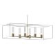 A colonnade of lights is supported by clean architectural lines. The Portico's articulate design is highly versatile and offers a two tone finish option. Part of the New Traditional Collection. Adjustable indoor pendant with finish and accent. Choose a finish for the canopy, downrods and inner fixture and choose an accent for the outer fixture frame. Available with your choice of Opal or Seeded Clear glass. Includes a multi-height stem kit with three 12" pipes, one 6" pipe and one 3" pipe.