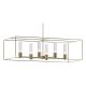 A colonnade of lights is supported by clean architectural lines. The Portico's articulate design is highly versatile and offers a two tone finish option. Part of the New Traditional Collection. Adjustable indoor pendant with finish and accent. Choose a finish for the canopy, downrods and inner fixture and choose an accent for the outer fixture frame. Available with your choice of Opal or Seeded Clear glass. Includes a multi-height stem kit with three 12" pipes, one 6" pipe and one 3" pipe.